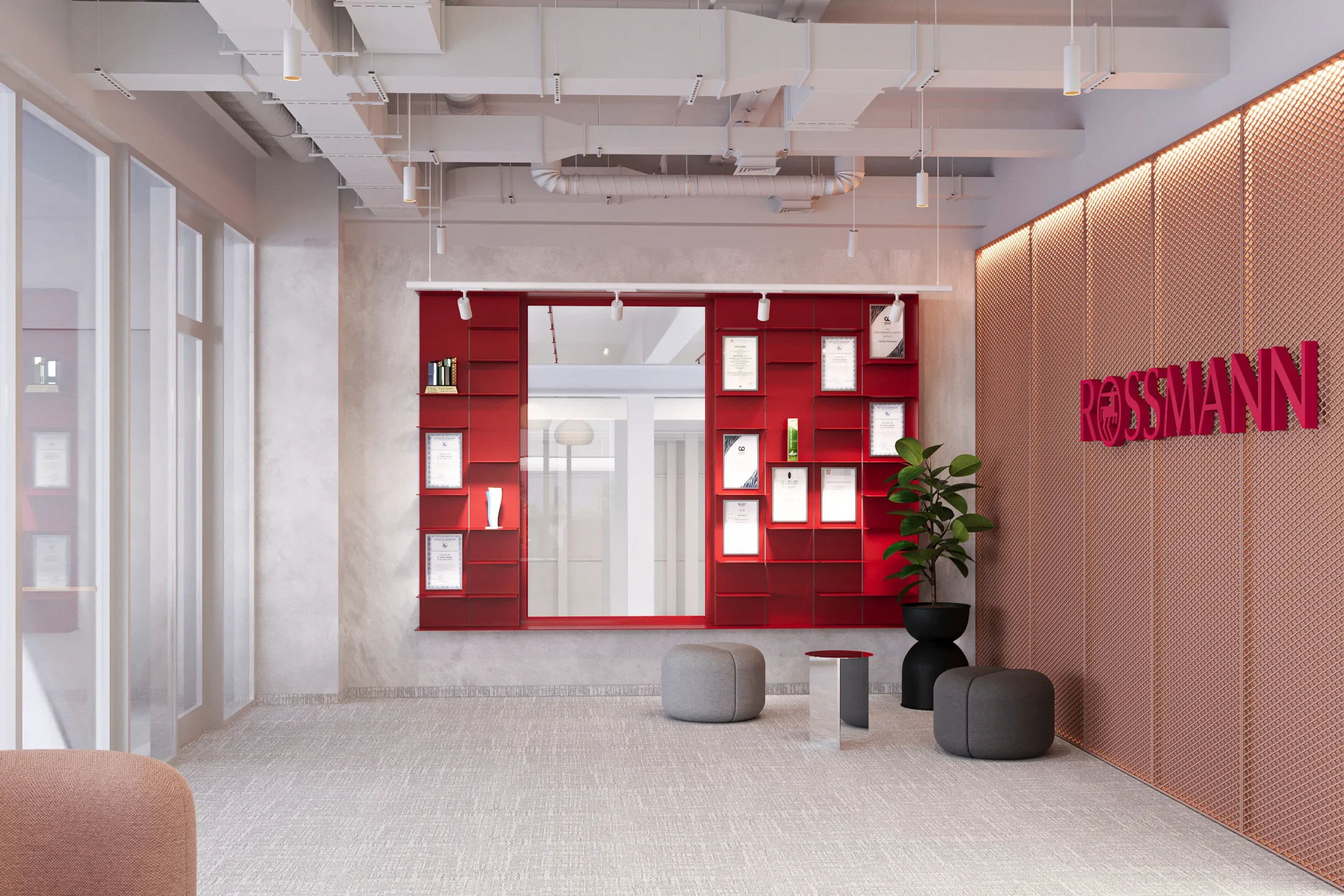 In addition to the warehouse development, Rossmann aims to create a 4,000 m² office space. The interior design concept is built around the key themes of “Home x Industrial x Beauty.” These principles are reflected not only in the choice of materials and design language, but also in the definition of functions and the overall spatial organization.