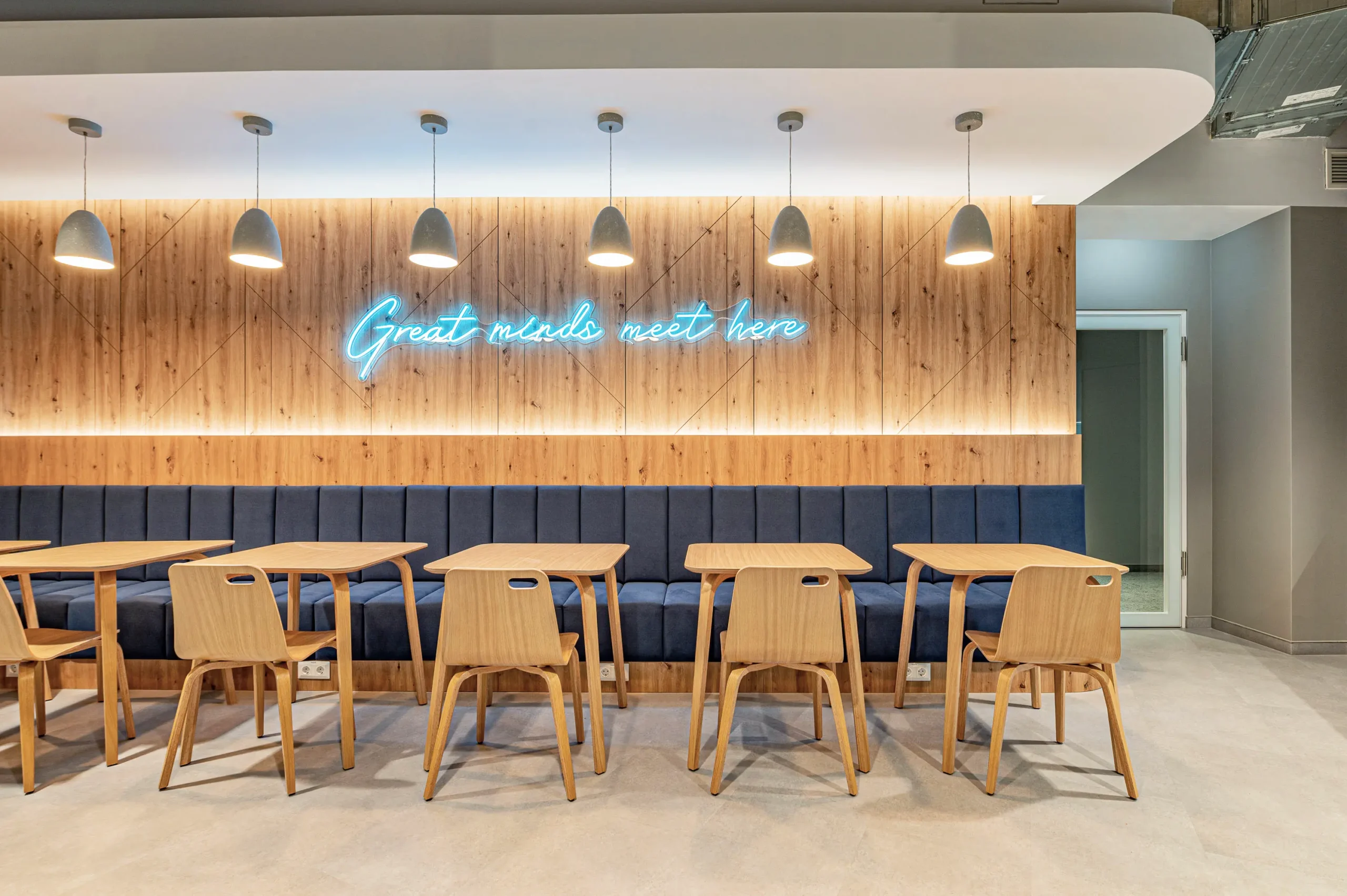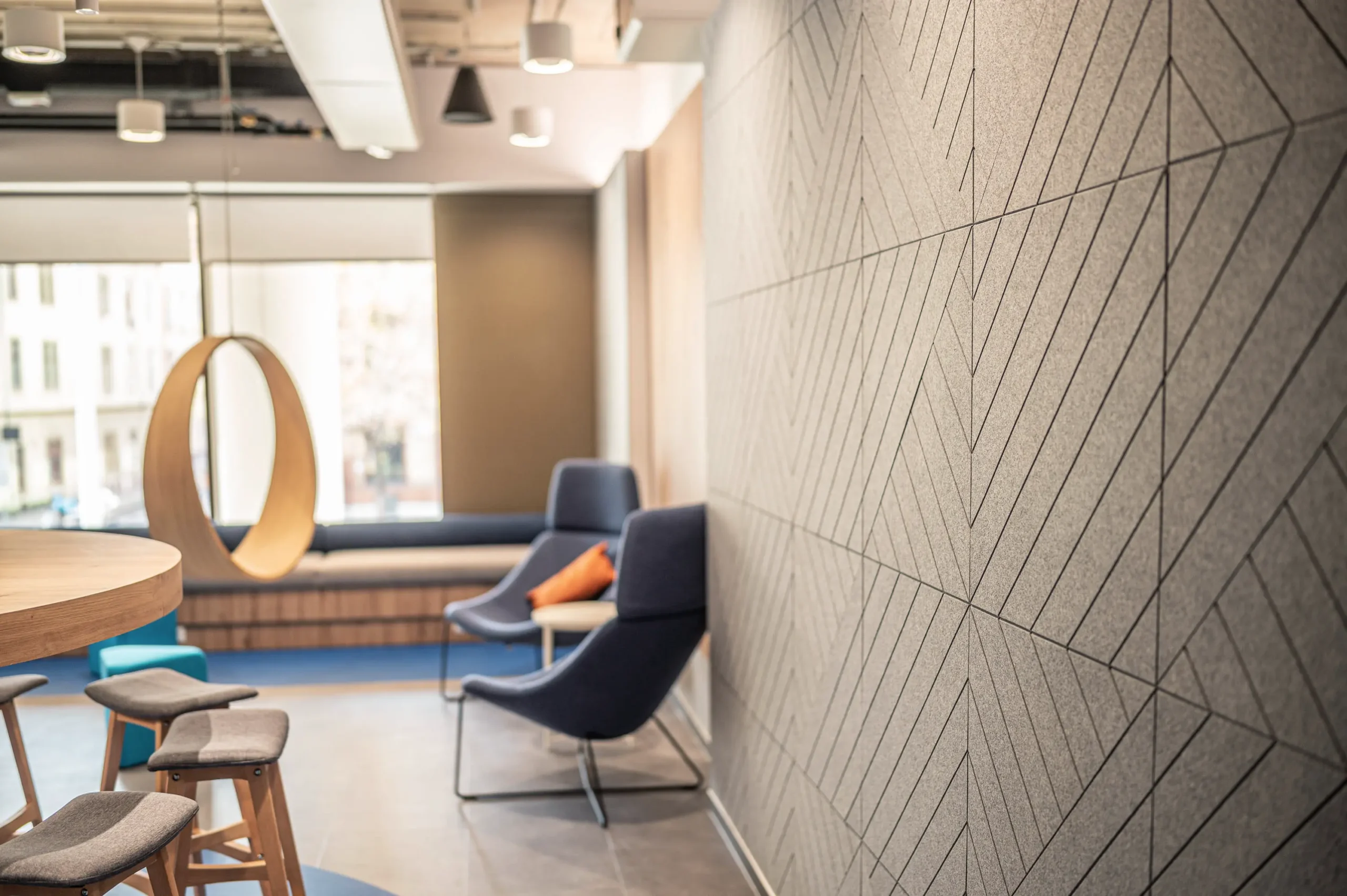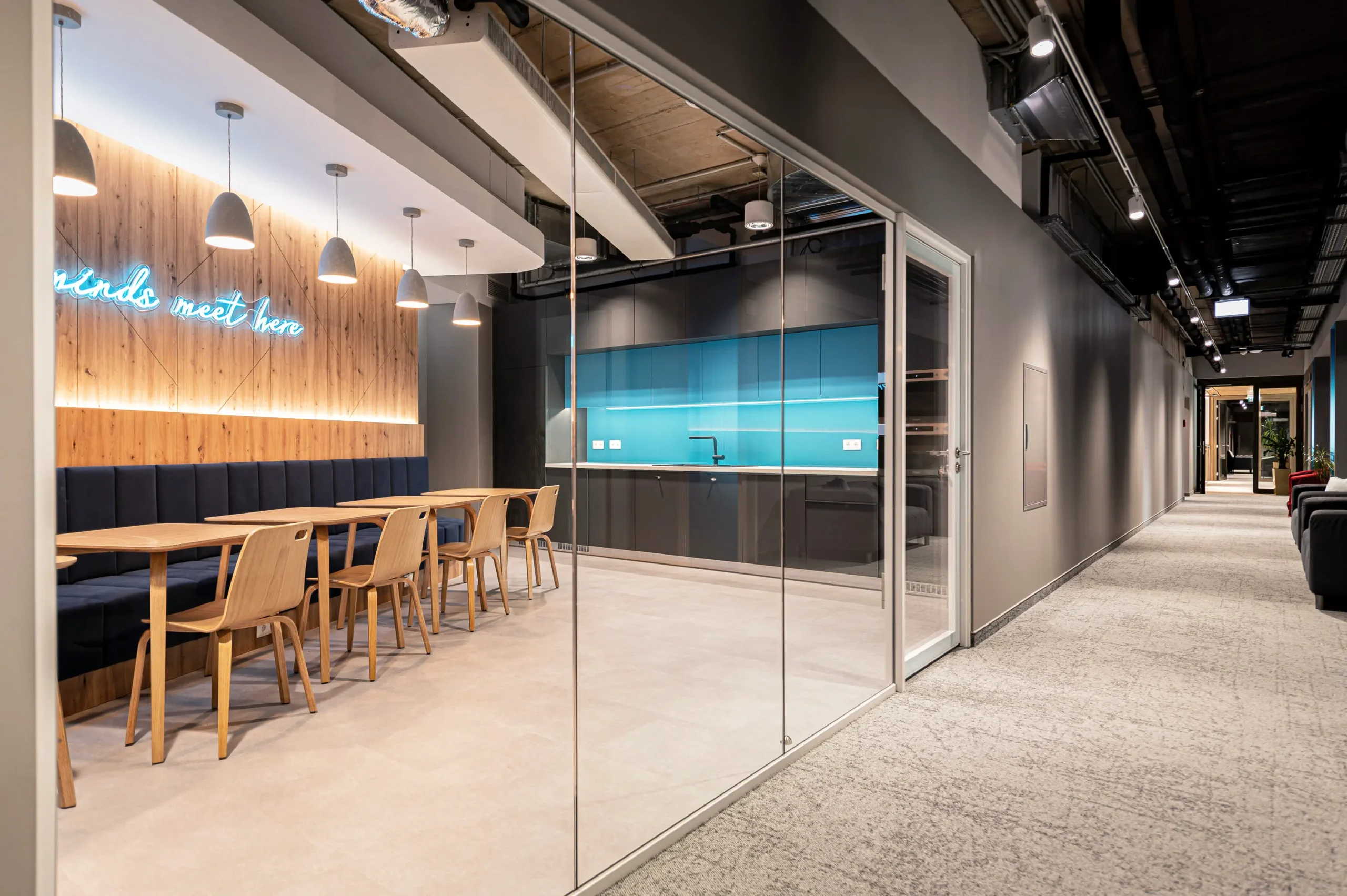A Bluebird budapesti irodáját a H2Offices komplexumban (Váci út 23–27) terveztük, amely a munka és a magánélet harmonikus integrációját célozza. Az iroda kialakítása rugalmas és emberközpontú, a biophilia, a természetes fények és a nyugtató kék árnyalatok alkalmazásával olyan környezetet hoztunk létre, amely egyszerre inspirálja a kreatív együttműködést és biztosítja a fókuszált munkavégzést.