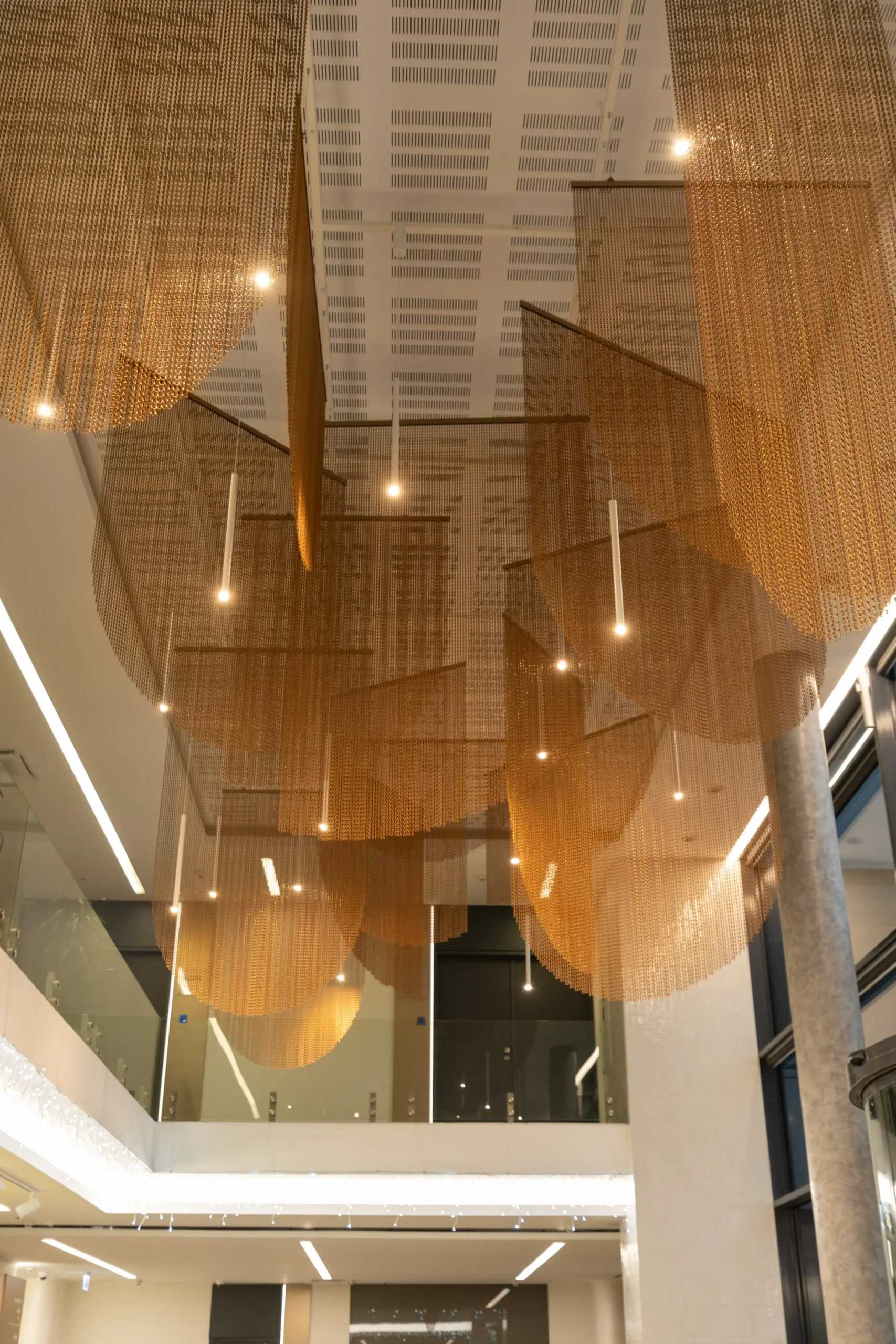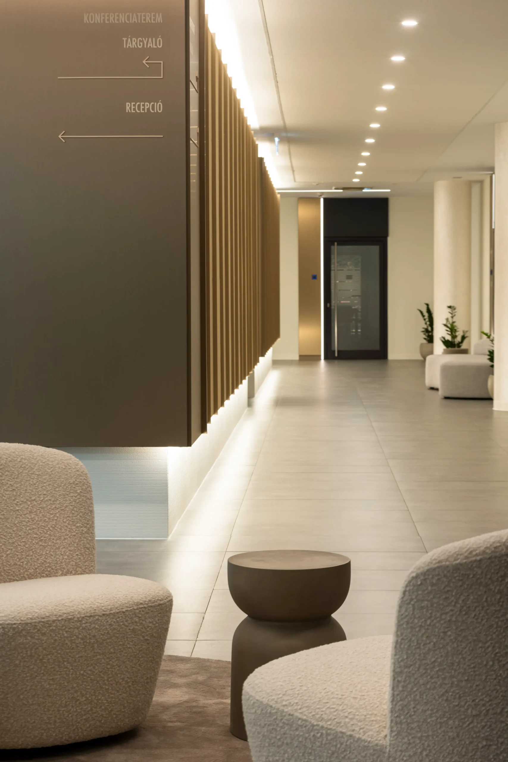 Az áramló formavilágú, kényelmes ülőbútorok és a tágas elrendezés lehetővé teszik, hogy a lobby elegáns és befogadó legyen. A változatos anyaghasználat – a bronz láncoktól a márványhatású kőlapokig – erőteljes fókuszpontokat hoz létre, és egyedi karaktert ad a térnek.