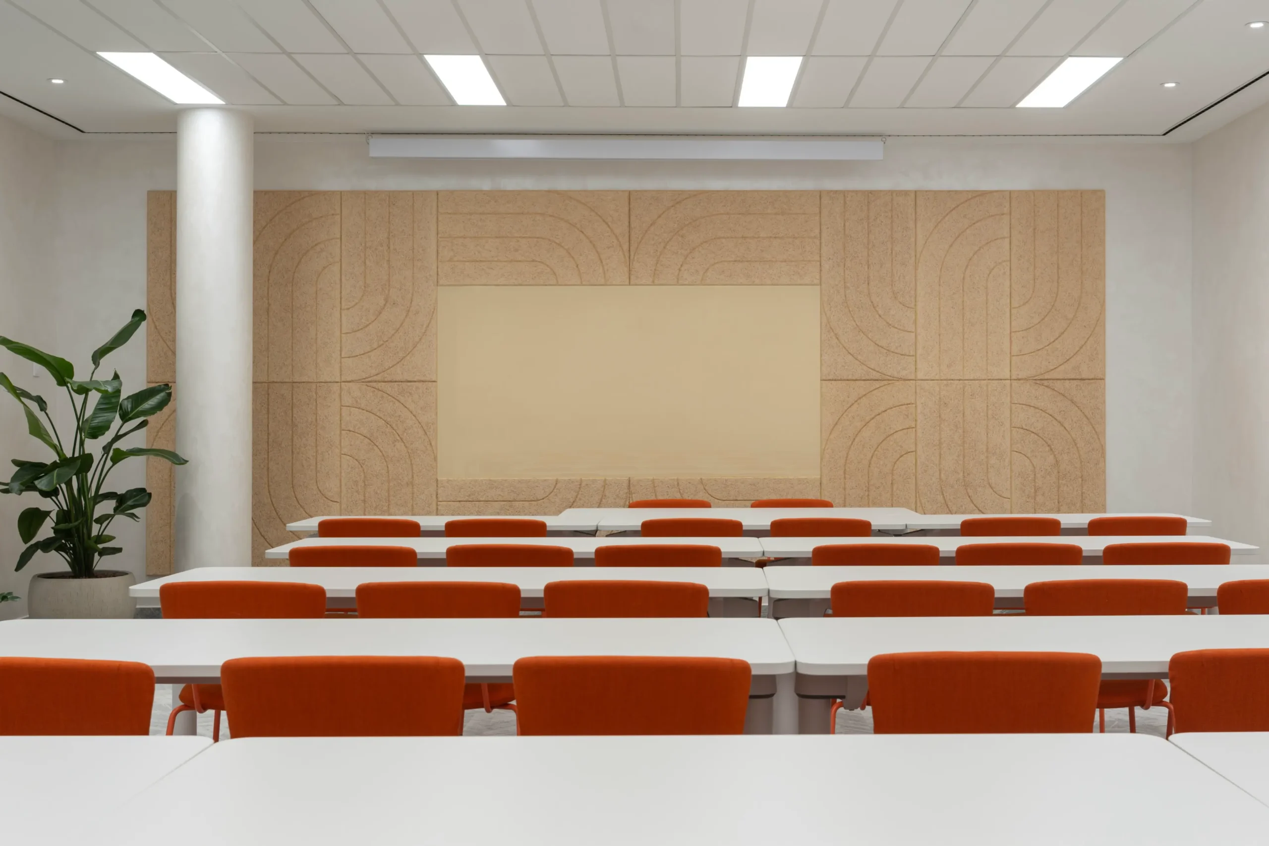 A lobby felújítása egy izgalmas és összetett fejlesztési projekt volt, amelyben az esztétikai és funkcionális szempontok mellett kiemelt szerepet kaptak a modern technológiai megoldások és a fenntarthatóság elvei. A bontási munkálatokat tudatosan minimalizáltuk: a földszinti padlóburkolat megőrzésével, valamint egyedi formavilágú darabszőnyegek alkalmazásával frissítettük a teret. A meglévő szürke tónusú hidegburkolatot meleg árnyalatú színpaletta – bézsek, földszínek és lágy fehérek – egészíti ki, kiegyensúlyozva a tér hangulatát.