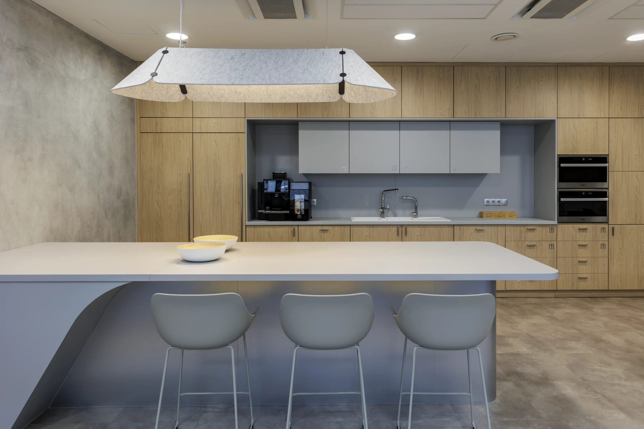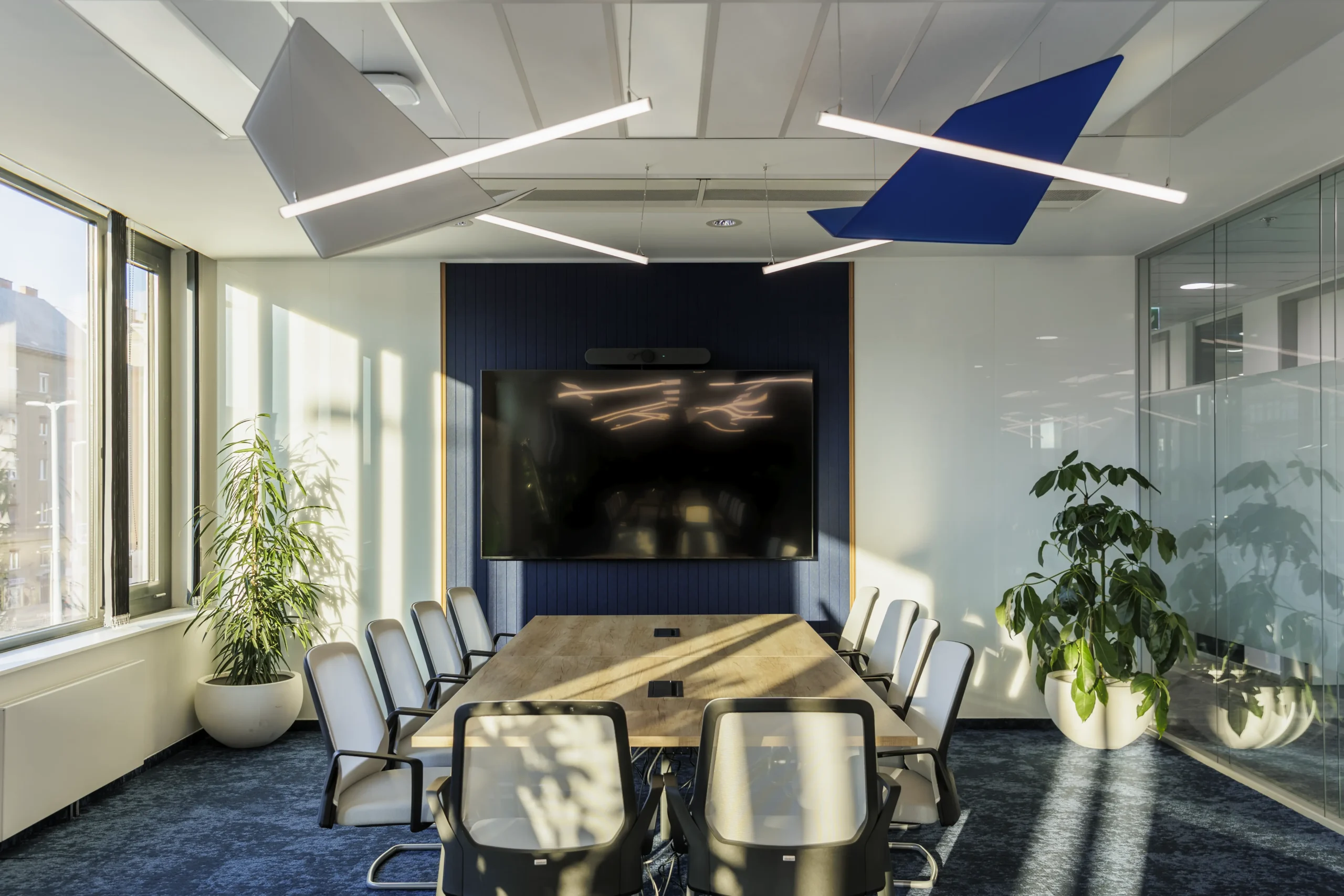 A karakteres arculat a tárgyalókban visszafogott eleganciával jelenik meg, míg az open office terekben markánsabb, dinamikus formák és részletek teszik változatossá és inspirálóvá a mindennapi munkakörnyezetet.
