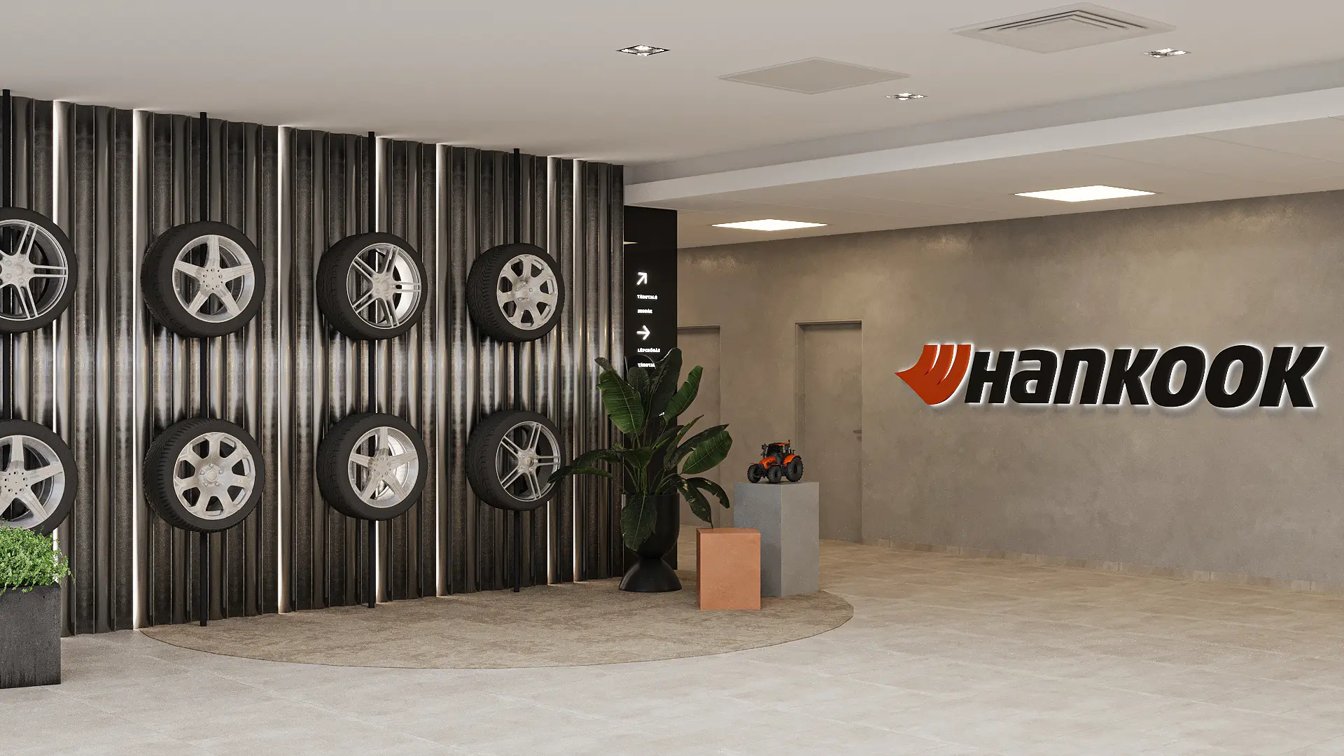 Tervezési feladatunk a Hankook Tire rácalmási gyárának megérkező terének és előadótermének megújítása volt.