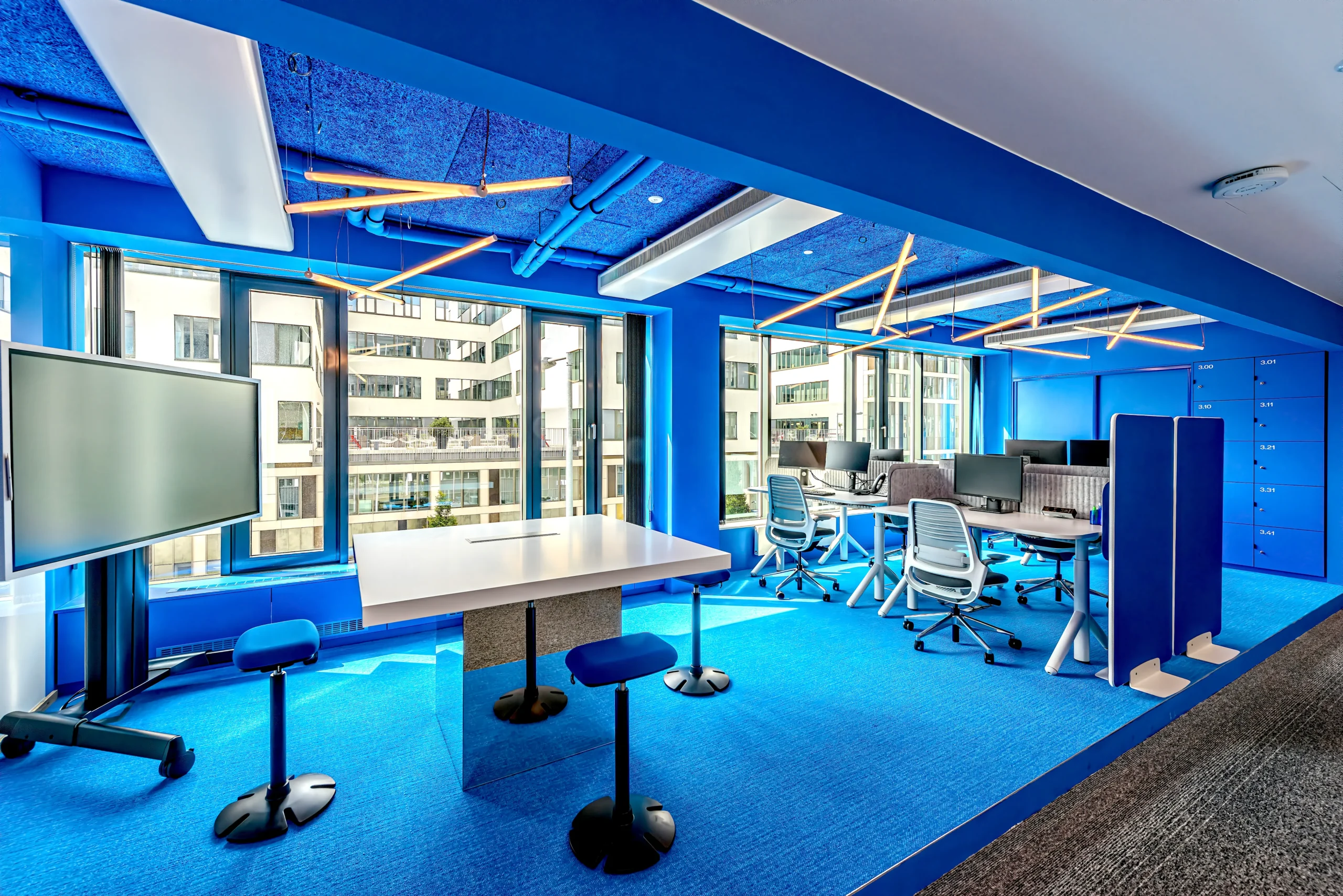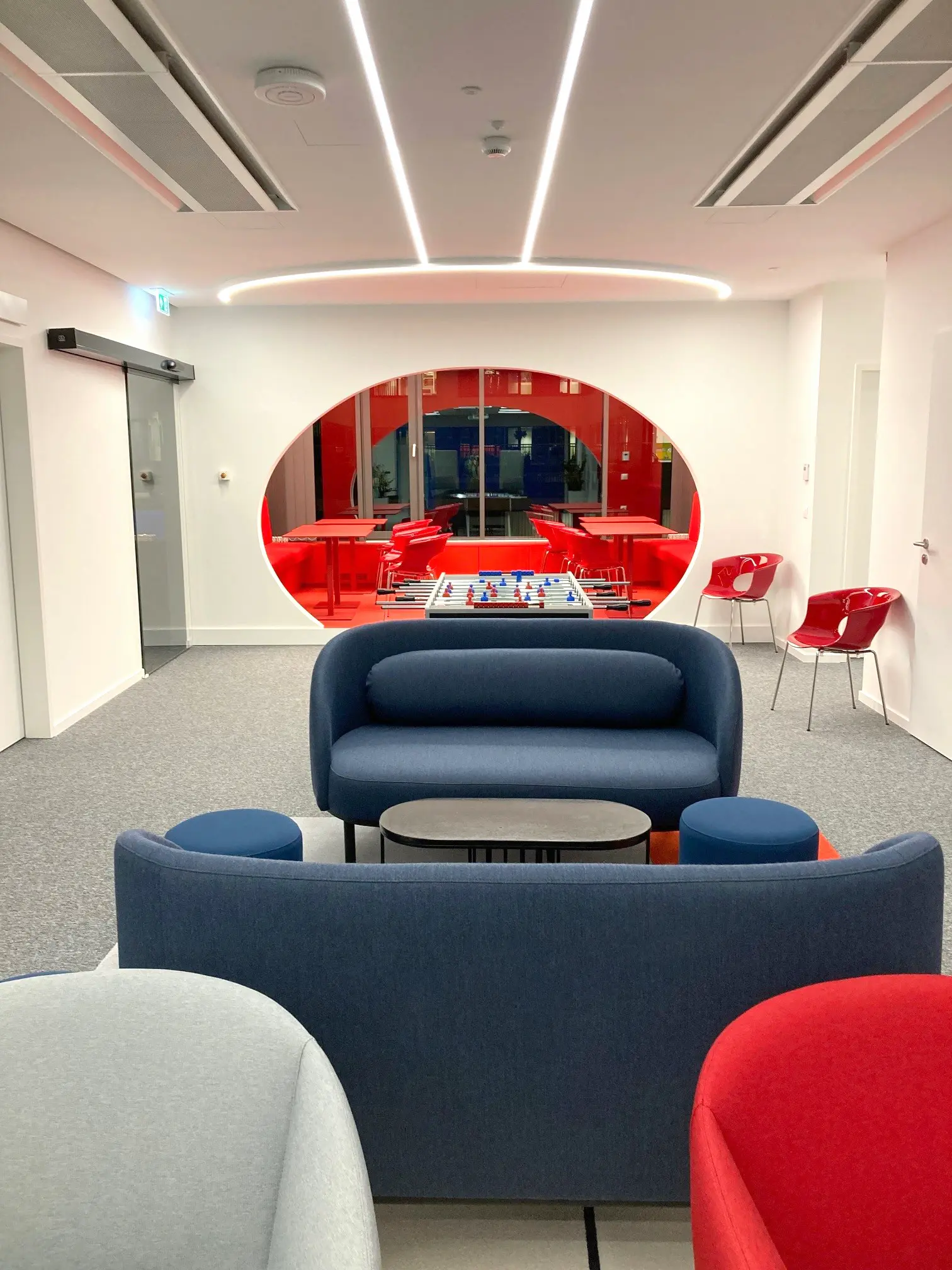 Az iroda egyik legmeghatározóbb tere az Innovation Lab, ami önmagában szimbolizálja mindazt, amit a cég képvisel: innovatív, energikus, fiatalos.