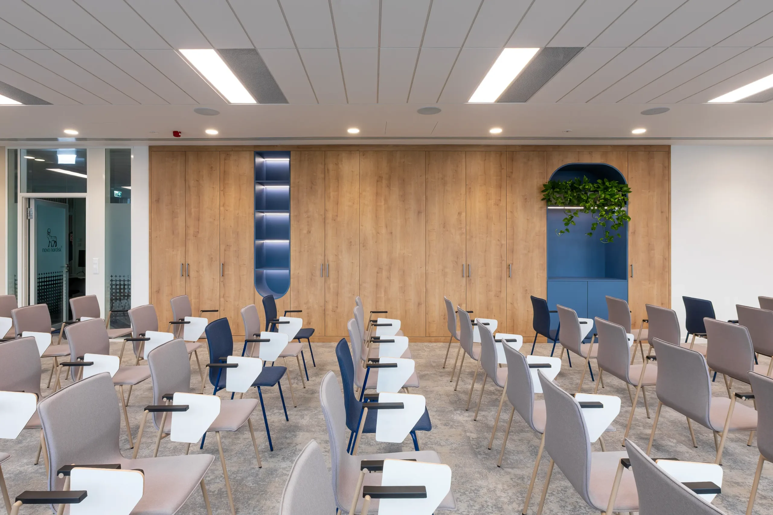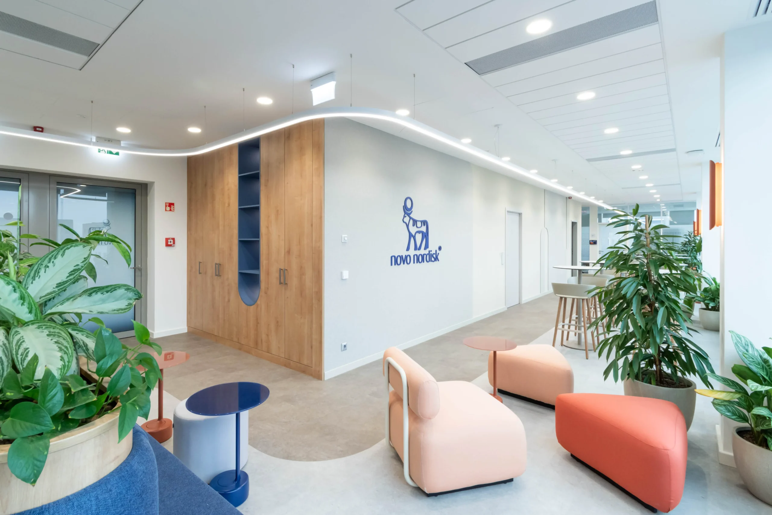 A Novo Nordisk nemzetközi gyógyszeripari vállalat irodája új funkciókkal bővült, amelyek célja a munkavégzés és a belső közösségi élet támogatása. Az új szárnyban helyet kapott egy auditórium, egy nagy tárgyaló, a szükséges kiszolgálóhelyiségek – mosdók, catering rész és konyha –, amelyek mind hozzájárulnak ahhoz, hogy az iroda egyszerre szolgálja ki a mindennapi működést és a nagyobb volumenű eseményeket is.
